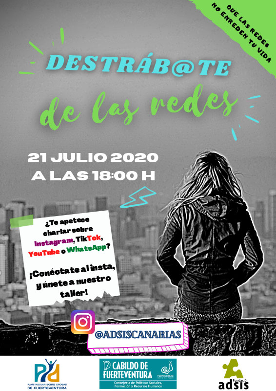 - Destráb@te de las Redes.21 de Julio a las 18:00h.Centrado en las redes sociales que más usa la población juvenil (Instagram, TikTok, WhatsApp, YouTube, entre otras).
