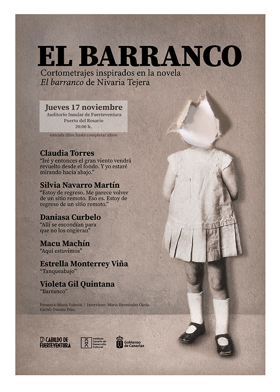 El Auditorio Insular de Fuerteventura acoge el próximo jueves, 17 de noviembre, a las 20.00 horas, la proyección de seis piezas audiovisuales inspiradas en la novela El Barranco de la escritora canario cubana Nivaria Tejera.