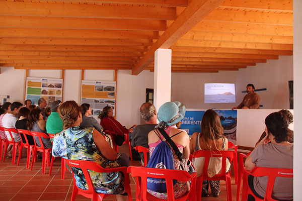 Se encargó de hablar de la fauna el biólogo Manuel Carrillo, responsable del proyecto escultórico La Senda de Los Cetáceos, que se dedica a devolver a las costas de la isla los esqueletos de estos animales que aparecen varados en el litoral majorero. Uno de ellos, un calderón tropical (Globicephala macrorhynchus) de 5 metros de longitud que apareció muerto en 2009 junto al Faro de Martiño, en el extremo norte de Isla de Lobos, luce ya a modo de escultura en el área de descanso habilitada recientemente por el Cabildo y que acogió esta jornada.