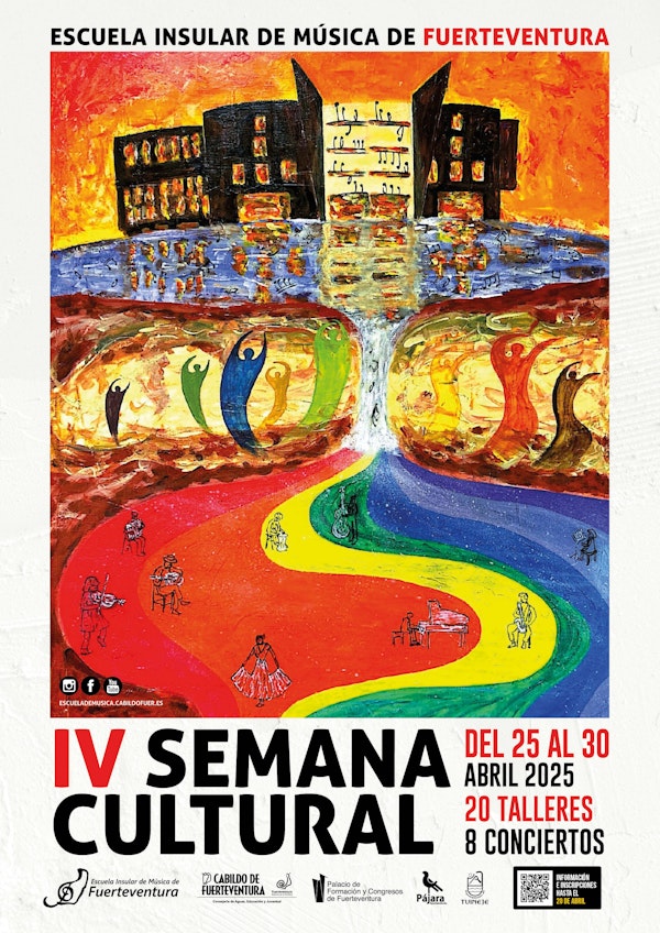 La IV Semana Cultural de la Escuela Insular de Música arranca este viernes, 25 de abril, a las 18.00 horas, con un acto de inauguración en su sede. Durante el acto, se hará entrega de premios y obsequios a las personas ganadoras y participantes del concurso de carteles. Una vez finalizado, se dará paso a la ¡Maratón Musical!, un evento colectivo que dará arranque a la programación que se extiende hasta el 30 de abril.
