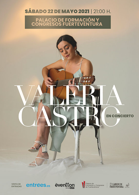 La artista canaria Valeria Castro actuará el 22 de mayo, a las 21.00 horas, en el Palacio de Formación y Congresos de Fuerteventura, dentro de la agenda cultural del Cabildo de Fuerteventura. La joven, natural de La Palma, demostrará su talento a través de un concierto íntimo y acústico, en el que interpretará versiones de éxitos que la han llevado a ser uno de los grandes descubrimientos musicales del 2020. Las entradas pueden adquirirse a través de la web entrees.es.