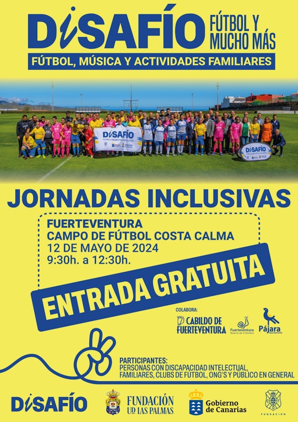 Con motivo de este proyecto, el próximo 12 de mayo, entre las 9.30 y las 12.30 horas de la mañana, se celebrarán en el campo de fútbol de Costa Calma una serie de partidos de fútbol entre los equipos EDI e I+I y el equipo local de Fuerteventura constituido por participantes con discapacidad intelectual de las diferentes asociaciones de la isla. Será una mañana festiva e inclusiva, con fútbol, música y otras actividades.