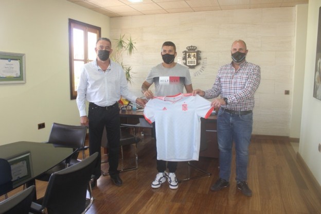 El presidente del Cabildo, Sergio Lloret López y el consejero de Deportes, Claudio Gutiérrez Vera, reconocen y felicitan al futbolista majorero por su espectacular trayectoria y últimos logros deportivos.