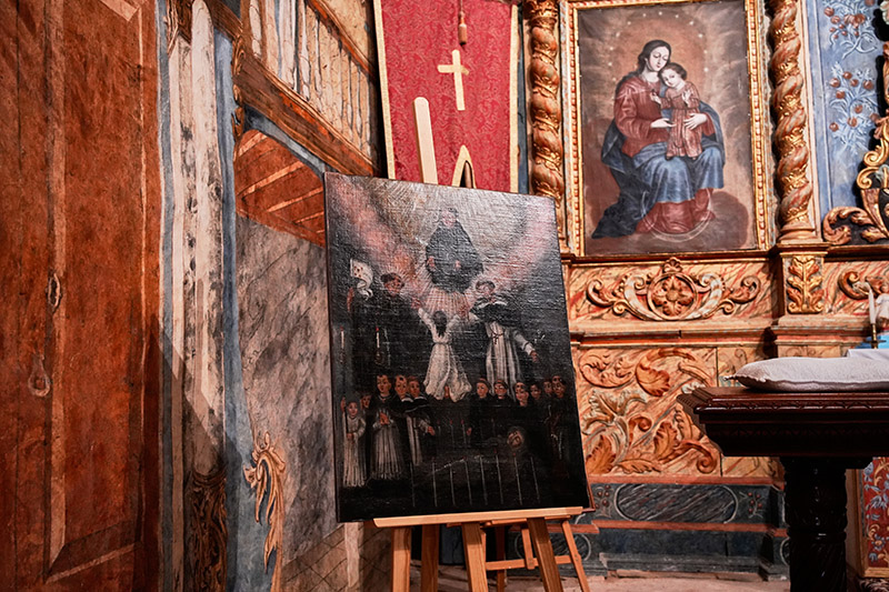 Una obra que data del siglo XVIII y que “recuerda a la composición de los cuadros de ánimas, tan importantes en Fuerteventura”, destacó la conservadora, quien explicó que la pintura representa el duelo del primer presbítero y mayordomo de la iglesia, Manuel Benítez, tras morir, según consta en los archivos, ahogado en el barranco de Río Cabras.