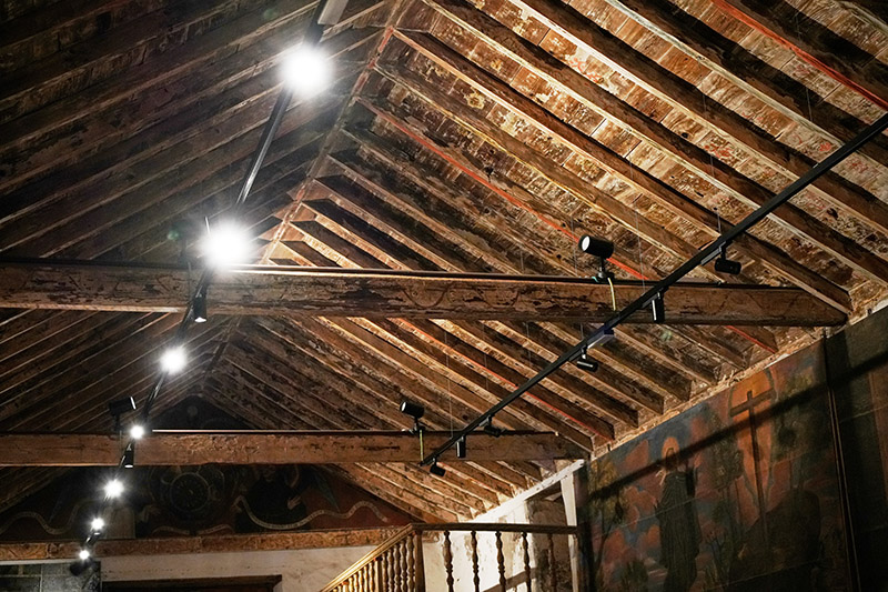 Con dos espacios diferenciados visual y lumínicamente, los trabajos desarrollados en el altar de la Ermita permiten su iluminación sin que puedan observarse las infraestructuras utilizadas. Mientras, en el cuerpo de la nave se implementó un tipo de iluminación en rieles electrificados, de estilo monótono para evitar su impacto visual y capaz de modificar la luz focal en función del uso requerido por el templo en cada momento.
