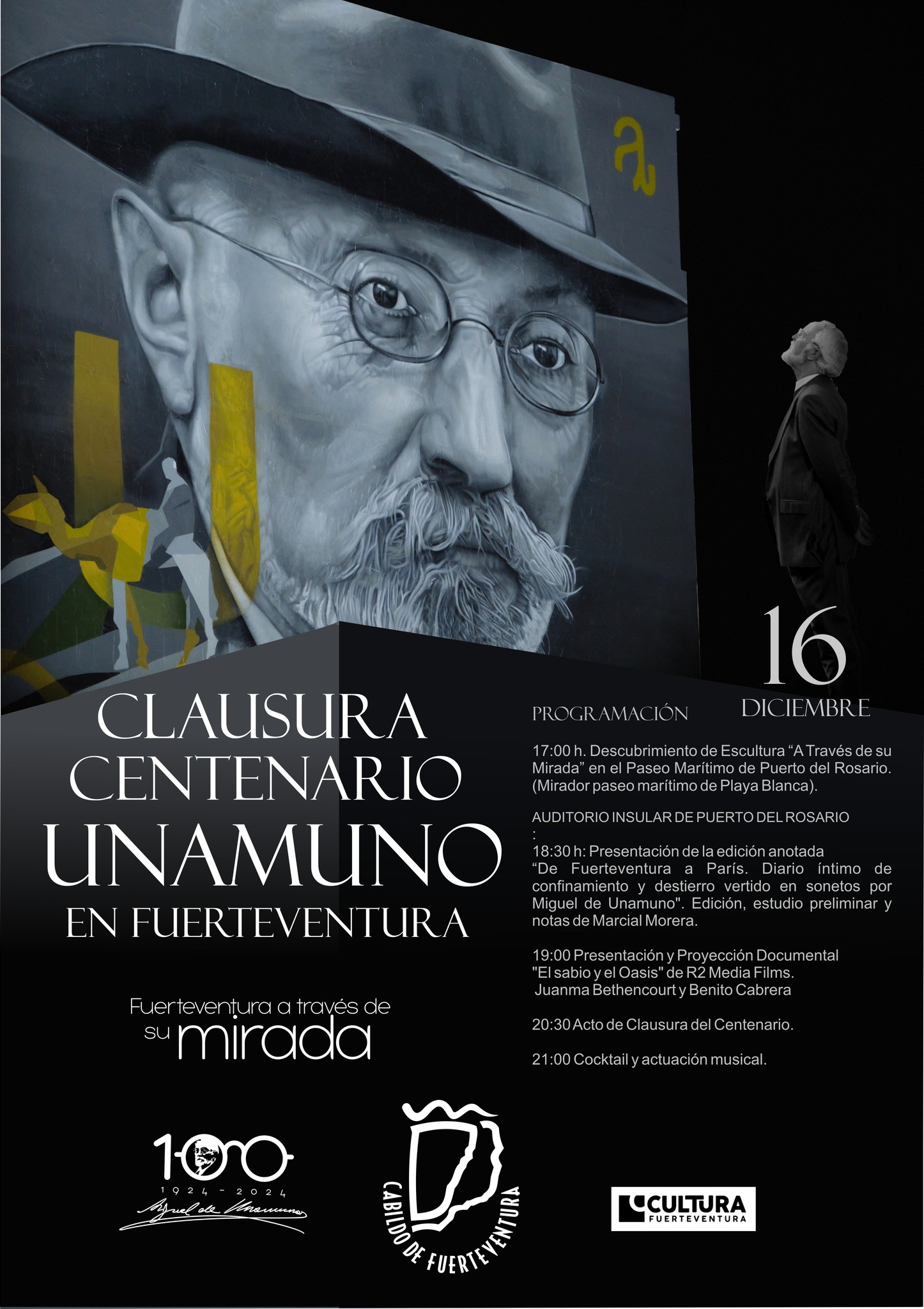 Tras un año repleto de actos en conmemoración del centenario de la llegada de Unamuno a la Isla, la programación ‘‘Fuerteventura a través de su mirada’ organizada por el Cabildo de Fuerteventura llega a su fin este lunes, 16 de diciembre, con una serie de actividades.