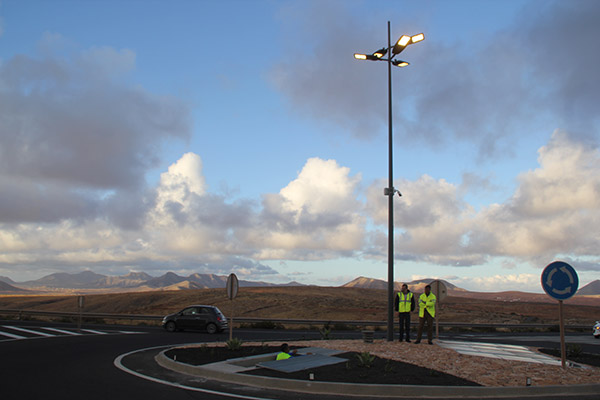 El Cabildo de Fuerteventura ha instalado un sistema de alumbrado fotovoltaico en la rotonda de intersección de las carreteras FV-30 y FV-416, ubicada en el cruce de caminos entre las poblaciones de Antigua, Valle de Santa Inés y Betancuria. Se trata de la primera glorieta de la Isla cuyas luminarias se abastecen únicamente con energía solar, gracias a la colocación de 12 paneles fotovoltaicos, que generan una potencia de 2,8 kWp.
