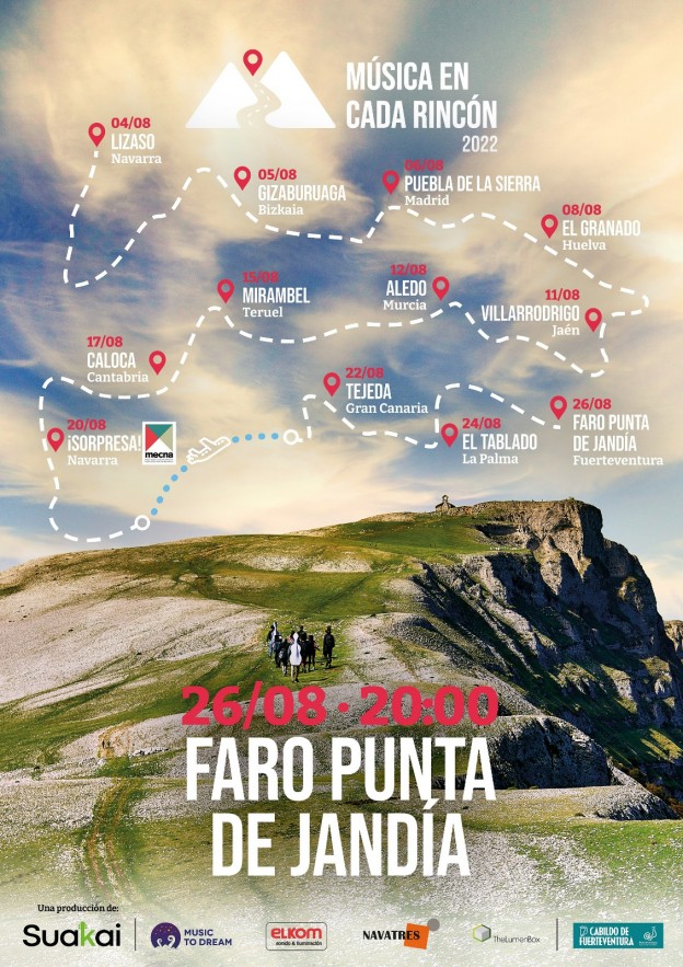 La tercera edición de Música en cada Rincón llega este mes de agosto a los lugares más recónditos de la geografía española. Gracias a Museos de Fuerteventura, el proyecto cerrará su gira en la Isla con un concierto en el Faro de Punta de Jandía el viernes 26 de agosto, a las 20.00 horas.