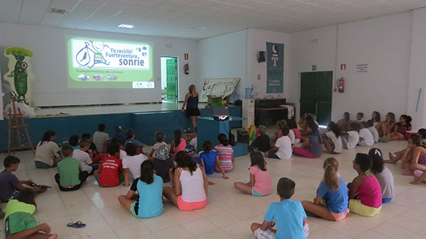 Un total de 650 niños y niñas y un centenar de adultos participaron este verano en la campaña Reutiliza y recicla con el Cabildo de Fuerteventura. El personal de la Consejería de Residuos, Coordinación con los Municipios y Participación Ciudadana, que dirige María Luisa Ramos Medina, realizó hasta 18 acciones de concienciación dentro de esta iniciativa llevada a cabo entre junio y agosto a lo largo de toda la Isla.