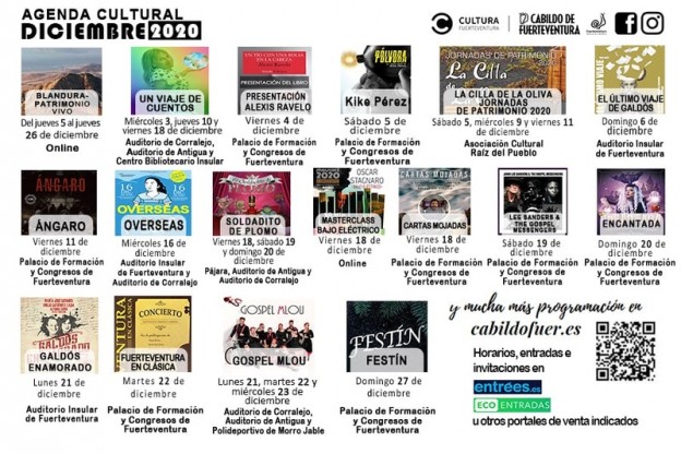 La agenda cultual del Cabildo de Fuerteventura del mes de diciembre viene cargada de actividades y espectáculos a desarrollar por todos los espacios escénicos de la Isla. La música gospel, el teatro, el cine documental y la divulgación sobre patrimonio histórico protagonizan esta programación, que organiza la Consejería de Cultura del Cabildo, que dirige Andres Briansó.