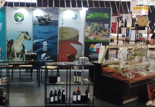 El stand ha contado con cuatro mostradores, apostando por la degustación directa por parte del cliente y la defensa de las elaboraciones con la participación de algunos de los propios productores. De este modo, se ha establecido un contacto directo entre cliente y productor, con catas de sabores primarios de Fuerteventura como el queso desde la DOP Queso Majorero, los 13 aceites envasados en Fuerteventura, vino, gofio, miel, así como productos elaborados como mermeladas, mojos o el siempre llamativo licor de cabra, entre otros.
