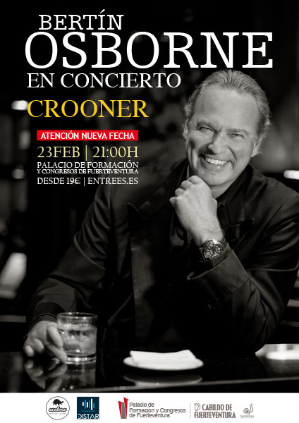 Marea Producciones & Management comunica que el concierto del artista Bertín Osborne, que tenía previsto celebrarse el viernes, 20 de octubre, en el Palacio de Formación y Congresos de Fuerteventura, sufre un cambio de fecha, por problemas técnicos ajenos a la empresa. El concierto será aplazado al viernes 23 de febrero de 2018, a las 21.00 horas.