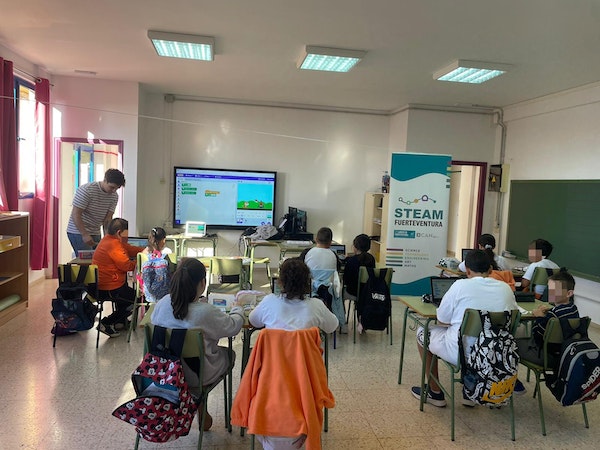 Más de 500 alumnos de educación primaria de diferentes centros educativos participan en las actividades de los Jueves STEAM, dentro del programa STEAM Fuerteventura que impulsa la Consejería de Innovación, dirigida por Rayco León.