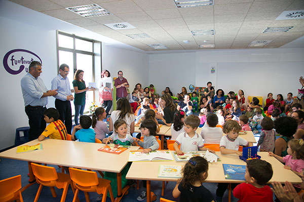 Más de un centenar de niños participaron ayer, martes, 19 de abril, en la inauguración de la nueva sala infantil y juvenil del Centro Bibliotecario Insular del Palacio de Formación y Congresos de Fuerteventura, dependiente del Cabildo de Fuerteventura.
