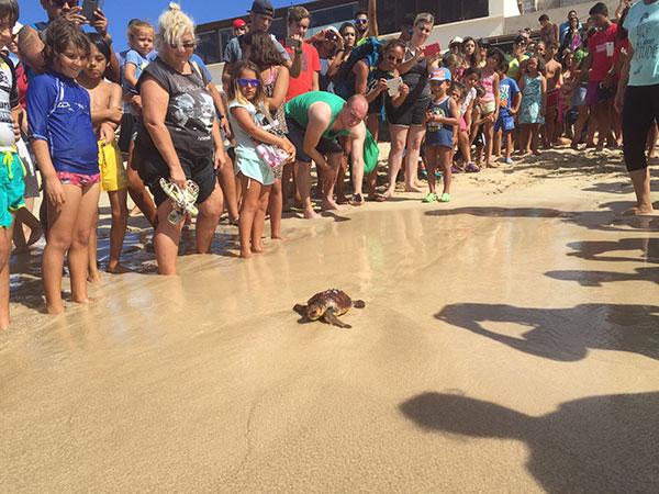 Técnicos de la Consejería de Medio Ambiente del Cabildo de Fuerteventura han procedido a la suelta al mar de Cebadita, una tortuga boba que se había recogido deshidratada en el Centro de Recuperación y Conservación de Tortugas Marinas de Morro Jable el pasado día 19 de junio. La suelta se llevó a cabo en la playa de La Cebada, en Morro Jable, y contó con la asistencia de numerosos bañistas que no quisieron perderse el regreso de Cebadita a su entorno natural.