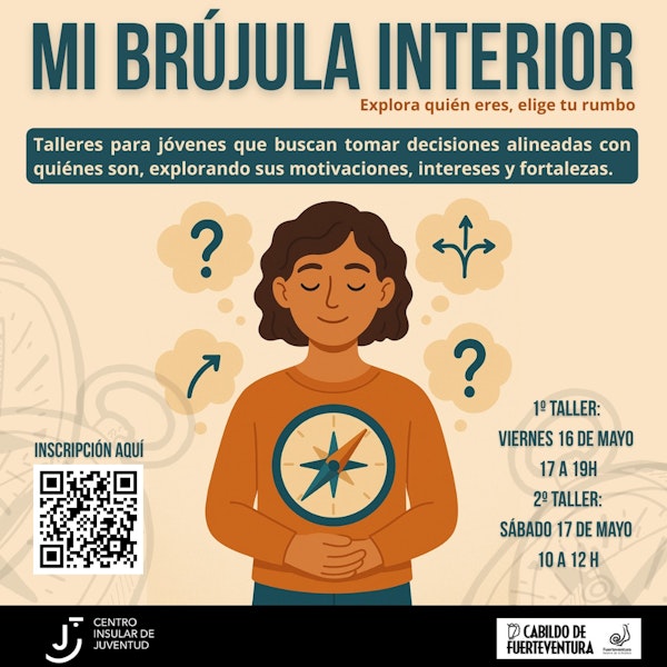 “MI BRÚJULA INTERIOR” no es solo una actividad formativa, es una invitación a mirar hacia dentro, compartir tus inquietudes con otros jóvenes en tu misma situación, y encontrar el acompañamiento necesario para tomar decisiones alineadas con tu auténtico yo.