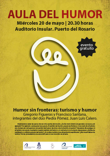 Fuerteventura recibe una nueva edición del Aula del Humor de la ULPGC con el espectáculo ‘Humor sin fronteras: turismo y humor’. Será en el Auditorio Insular este miércoles, a partir de las 20:30 horas, con entrada gratuita. Los protagonistas serán el dúo Piedra Pómez (Gregorio Figueras y Francisco Santana) y Juan Luis Calero.