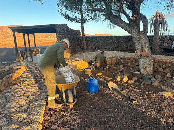 Una vez completada su labor de apoyo a la organización de Feaga, las cuadrillas han regresado al Museo del Queso para rehabilitar varios muros de piedra seca y de caminos empedrados (64 metros lineales en esta fase, de una previsión global de 180 metros lineales de muros de piedra rehabilitados o construidos) para después continuar en el Jardín de Cactus. Es una actuación destinada a mejorar la imagen turística de este espacio con especial significación.