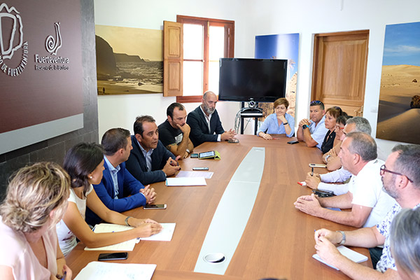 El Presidente del Cabildo ha estado acompañado de los Vicepresidentes 1º y 2º del Cabildo, de la Senadora por Fuerteventura, además de la Consejera de Medio Ambiente, y el Gerente del Patronato del Turismo. En el transcurso de la reunión el Presidente ha dado detalles de las gestiones coordinadas que desde la Presidencia del Cabildo se han establecido con el Presidente del Gobierno de Canarias y la Senadora de Fuerteventura para que desde Madrid se de solución al expediente del Hotel Riu Oliva Beach. El Presidente ha manifestado su
