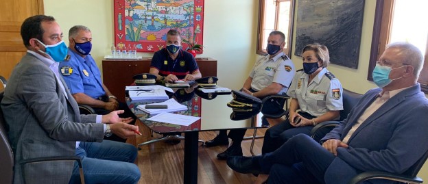 El Presidente del Cabildo Insular recibía en su despacho durante la mañana de hoy al director insular de la Administración del Estado para Fuerteventura, Domingo Fuentes Curbelo, a la Comisaría de la Policía Nacional en Fuerteventura, María Amparo Santos Cesa, el responsable de la Policía Local de Puerto del Rosario, el Jefe de la Policía Local de Puerto del Rosario, Pedro Gordillo, y el responsable del Servicio de Seguridad y Emergencias del Cabildo Insular, Fran Torres.