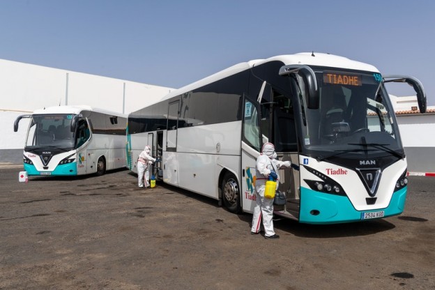 La Consejería de Transportes, Accesibilidad y Movilidad del Cabildo de Fuerteventura, que dirige Carmen Alonso, informa de que la empresa concesionaria Tiadhe ha dado comienzo a una campaña de limpieza integral de desinfección anti-Covid-19 en el interior de las guaguas de transporte regular interurbano de viajeros. De este modo, se extreman las medidas de limpieza y desinfección, tanto en las guaguas como en las diferentes infraestructuras de este servicio.