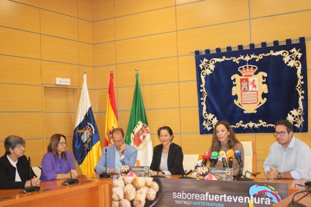 El Patronato de Turismo ha presentado este miércoles la que será la I edición de Saborea Fuerteventura, una feria gastronómica que se desarrollará en los hornos de cal de El Charco, en Puerto del Rosario, del 16 al 18 de diciembre y que está destinada a potenciar el producto de Km 0 y al sector gastronómico majorero que fusionarán tradición y alta cocina, para crear deliciosas tapas que podrán degustar todos los asistentes. A la presentación del evento asistieron la consejera de Turismo, Jessica de León, el consejero de Agricultura, Ganadería y Pesca, David de Vera, la gerente de Fuertegourmet, Virginia Moratinos y las concejales de Turismo de Pájara, Tina Da Silva y Betancuria, Rosa María Martín.