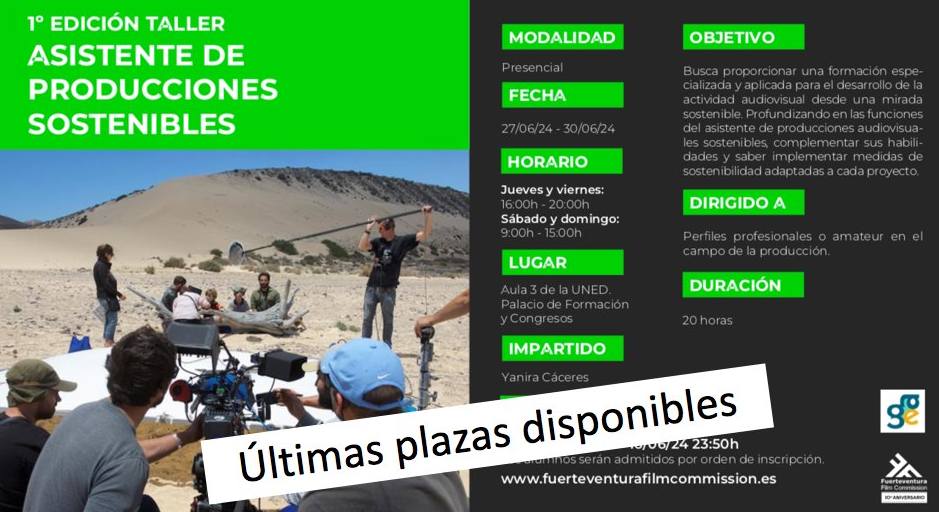 Este curso se imparte por primera vez en Fuerteventura y busca proporcionar una formación especializada y aplicada para el desarrollo de la actividad audiovisual desde una mirada sostenible. Los participantes podrán complementar sus habilidades y conocerán cómo implementar medidas de sostenibilidad adaptadas a cada proyecto.