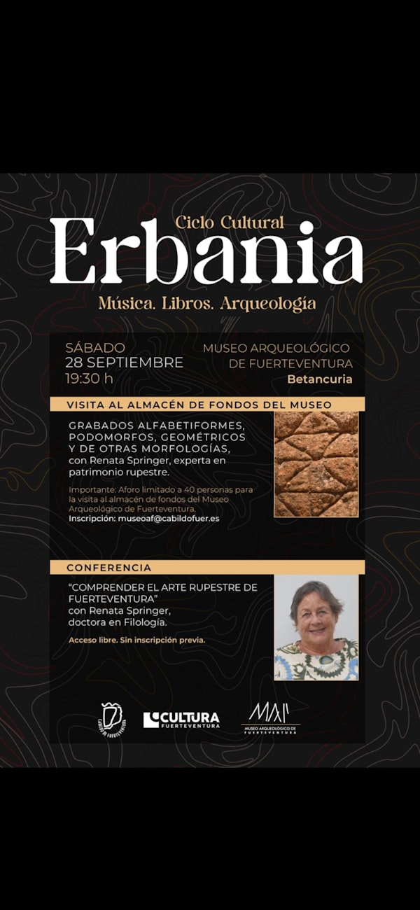 El Ciclo Cultural Erbania tiene como objetivo acercar el patrimonio arqueológico majorero al público, poniendo a su disposición las colecciones materiales que custodia el museo en su almacén de fondos y presentando las últimas publicaciones de libros relacionados con la cultura indígena canaria.