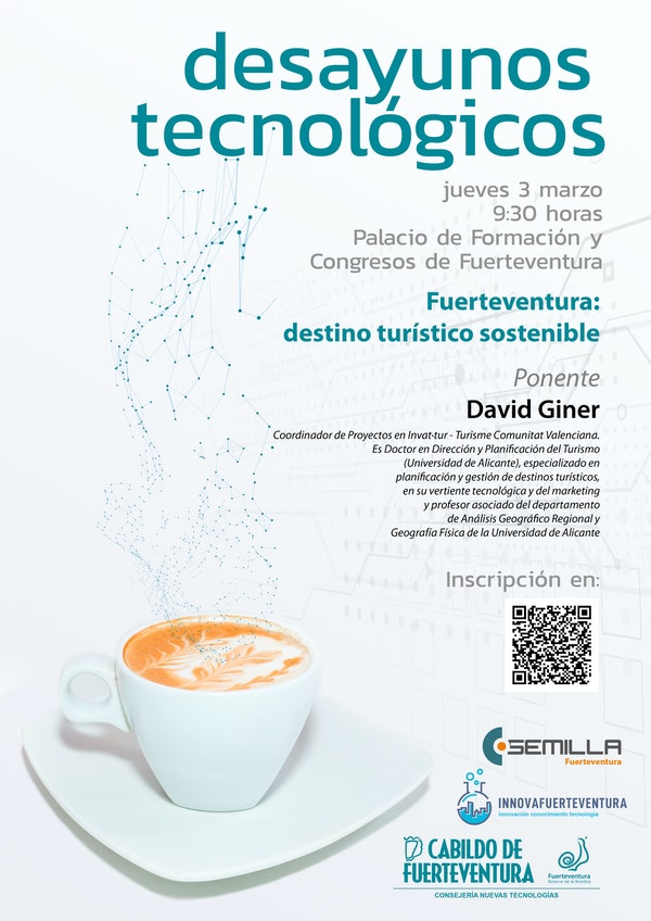 Los Desayunos Tecnológicos regresan a la Isla este jueves, día 3 de marzo, con una charla sobre Fuerteventura como destino turístico sostenible a cargo del experto David Giner. El evento tendrá lugar a las 09.30 horas, en el Palacio de Formación y Congresos. Se podrá seguir igualmente por streaming desde la web http://semillainnova.com/ y redes sociales del Cabildo (canal de Youtube)-